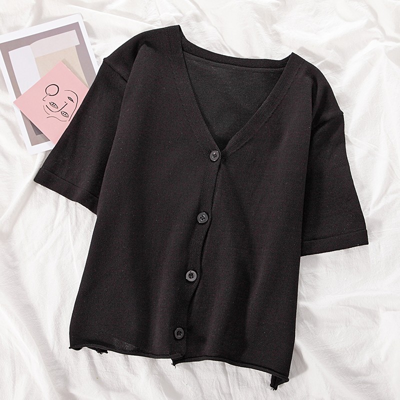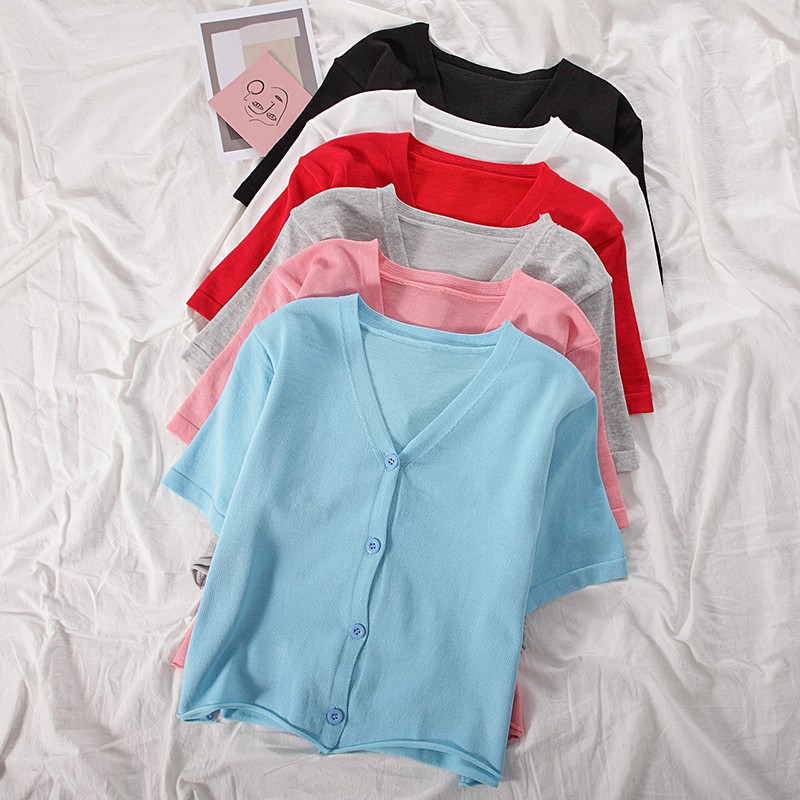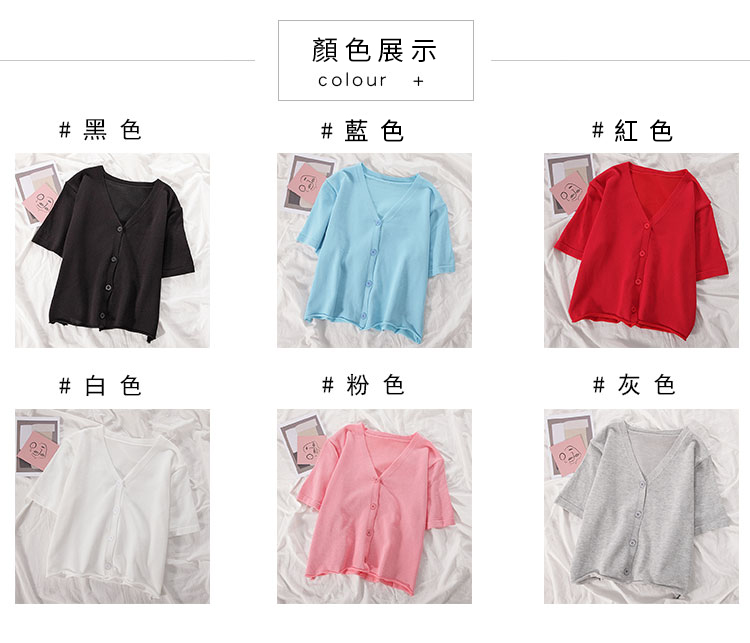 半小時前氣質v領薄款打底針織衫,2020夏季新款女裝短款開衫上衣 - 【買一送二】任選3件,僅需NT$1098