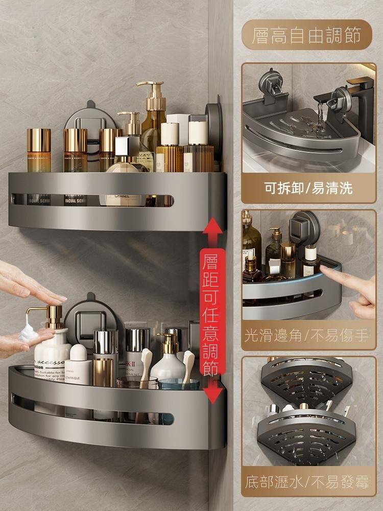 20分鐘前自帶吸盤,可隨時移動重復使用的置物架 免打孔廚房浴室衛生間三角置物架多用途壁掛收納架毛巾架 - 【超夯下殺】買一送二,共三入組 NT$999